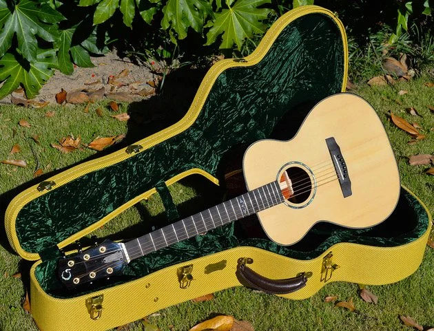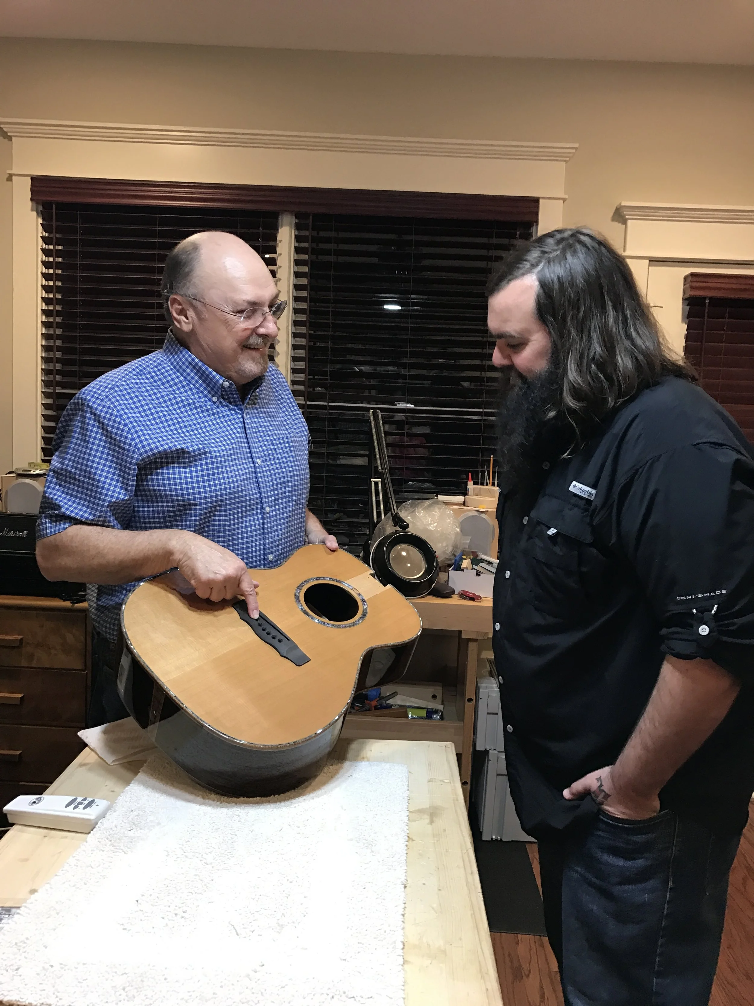 Levi came over to examine the guitar as it was being made. Along with Eldon they made the final decisions about the finishing touches and action .
