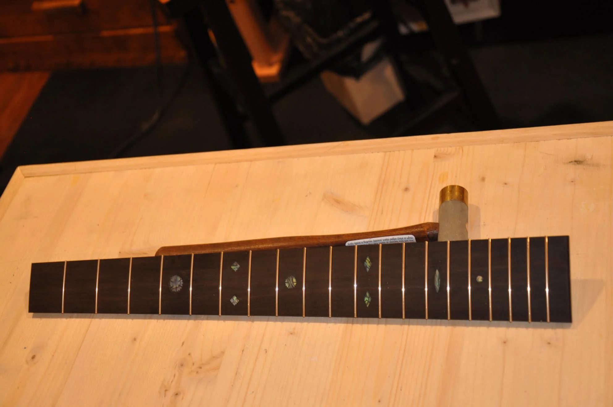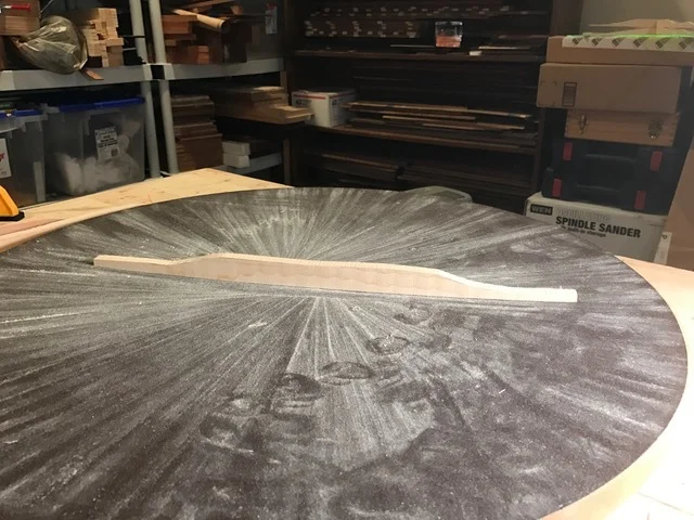 Here the bracing is being shaped to the perfect radius to arch the back on a guitar.